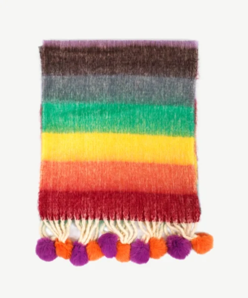 Features: All scarves end with fur pom poms reflecting colours in the scarf.