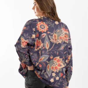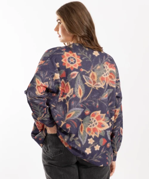 Features: Super Soft cosy knit .Polyester / Polyamide mixture. Modern floral design. Faux wood buttons and 2 pockets at the front. Generous oversized cardigan designed for the fuller figure. Designed as an outer garment