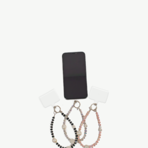 The loop is finished with a polished circular metal ring and flat plastic tab for easy attachment to any phone case.