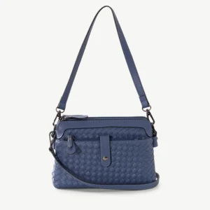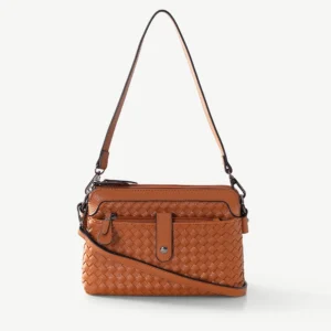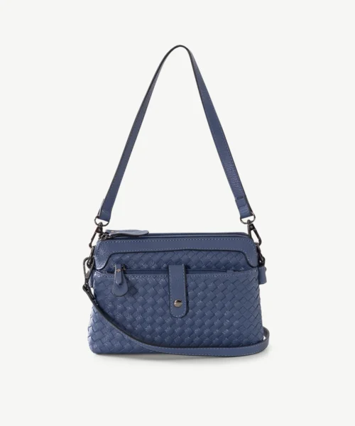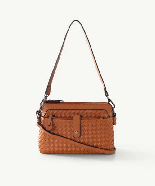 External Features: There are two zip closed pouches behind the open pocket. The front pocket is secured with a snap closed tab. Inside this front pocket is a fitted document holder. It is also suitable for folding money and carries four card slots. The tab secures the document / money holder. All hardware is pewter coloured.